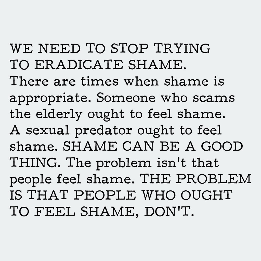 So when I say we shouldn’t be so quick to eradicate shame, I don’t mean the toxic kind. That can and should be put away because it does nobody any good. But not all shame is toxic. And historically, wise and godly folk have understood this. Aristotle and St. Paul certainly did.